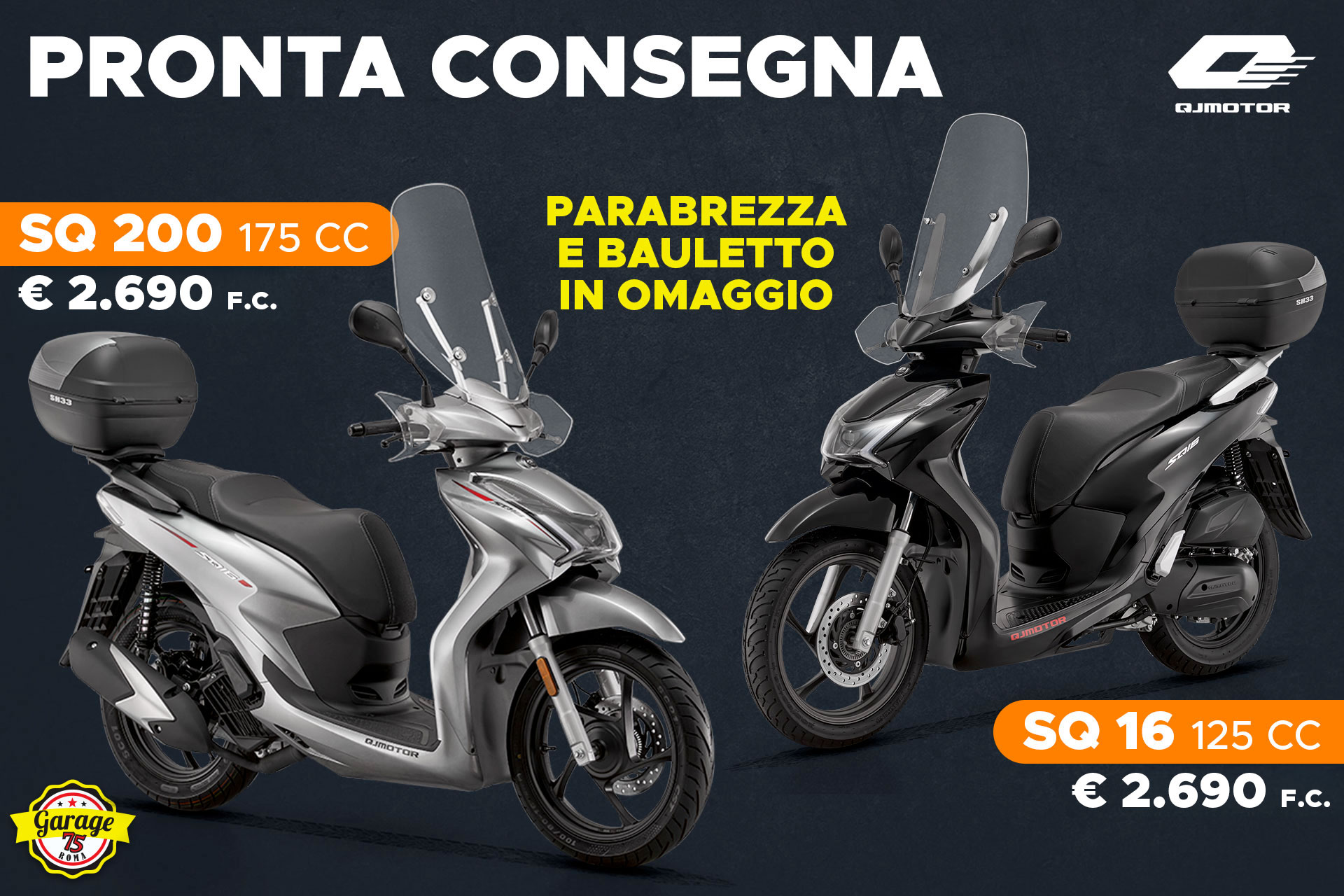 SQ 200 (175 cc) solo da Garage 75 allo stesso prezzo del 125, ovvero €2.690,00 con parabrezza e bauletto in omaggio.