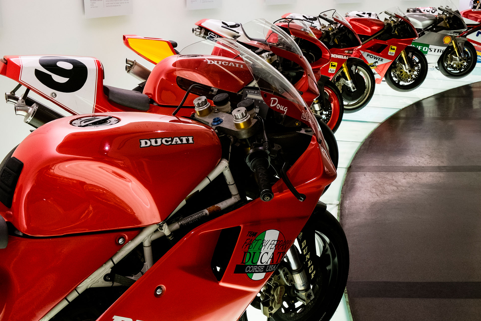 Ogni moto esposta nel Museo Ducati è un’opera d’arte le cui forme e colori raccontano una storia in cui i valori del marchio – stile, sofisticatezza e performance – sono esaltati da ogni minimo dettaglio. Ci sono tre percorsi da esplorare: